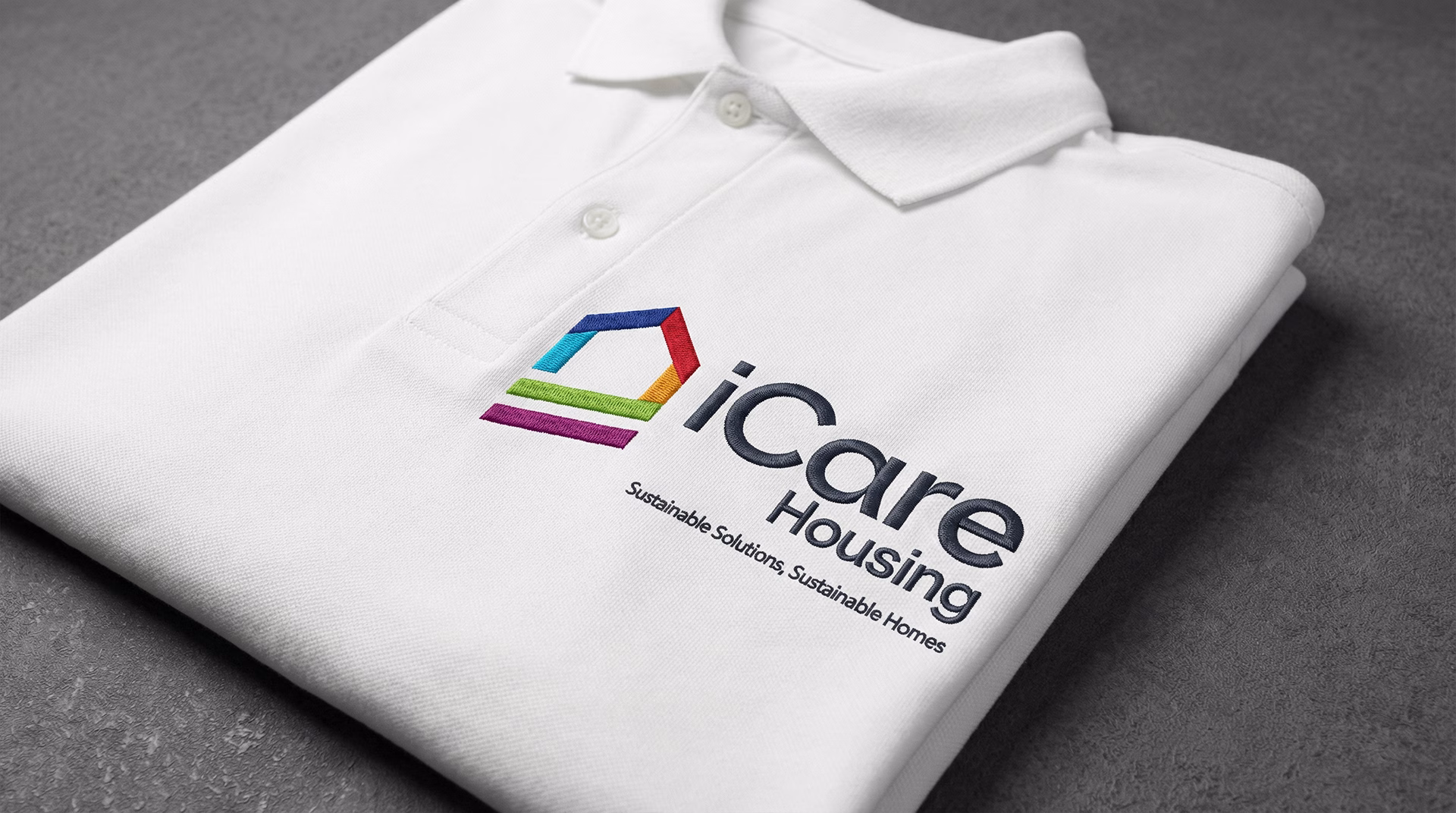 The new iCare Housing logo is built around a clean, contemporary mark that subtly evokes the structural stability of a home and the continuous, unbroken support the organisation provides.